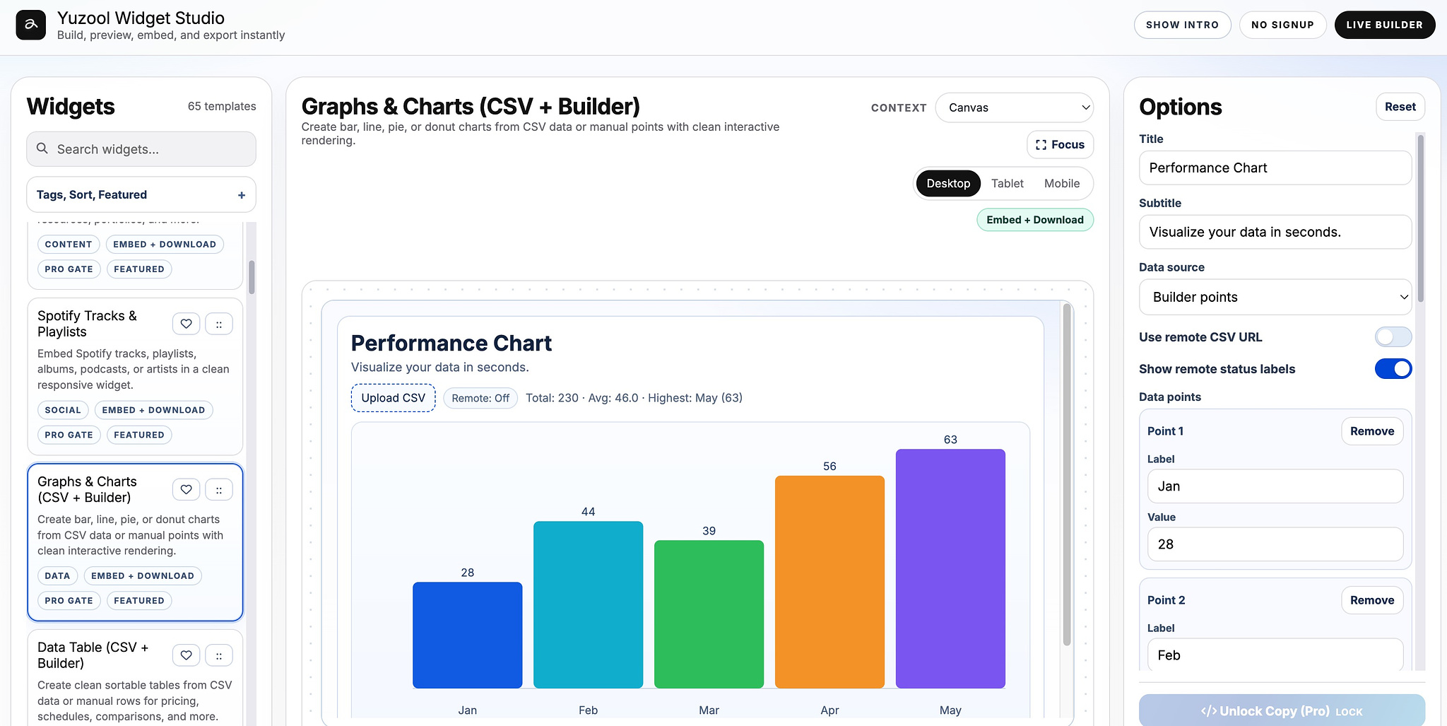 1. Data Table (CSV + Builder)